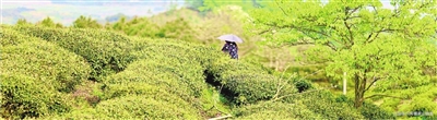 在茶天堂茶园,沐浴了和煦的春风,茶树上的新芽更加饱满诱人了。茶农们分散在茶场各处,十指翻飞,收获春天的馈赠。