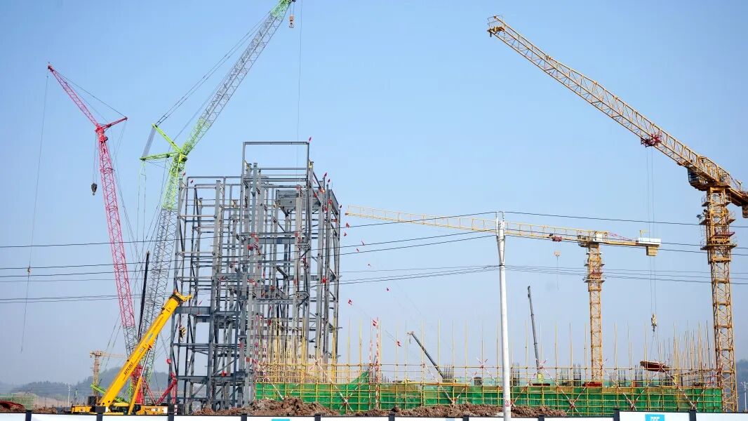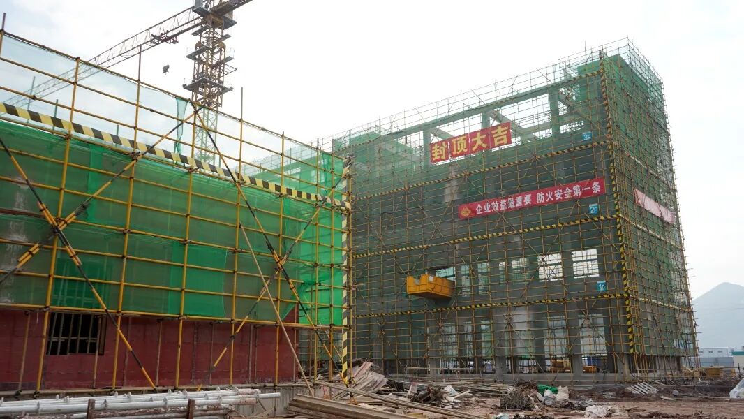 江山-瓮福化学产业园于2024年3月全面展开场平工作,仅用10个月就完成了3188亩的场平及清场工作。项目现场,“封顶大吉”的红色横幅显得格外醒目喜人。据了解,产业园中,江山磷化工资源综合利用项目已于2024年11月完成4栋主厂房封顶、瓮福江山6.6万吨黄磷项目提前48天完成了3栋主厂房封顶,真正实现了重点项目建设提速提质、增量增效。 “江山-瓮福产业园整体项目,按照时间节点有序推进,目前,24个标段项目正在有序推进,该阶段进场施工的人员共计1500人以上。”县工信局副局长王万里说。