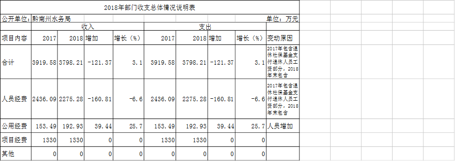 黔南布依族苗族自治州水务局2018年部门预算批复表.xlsx