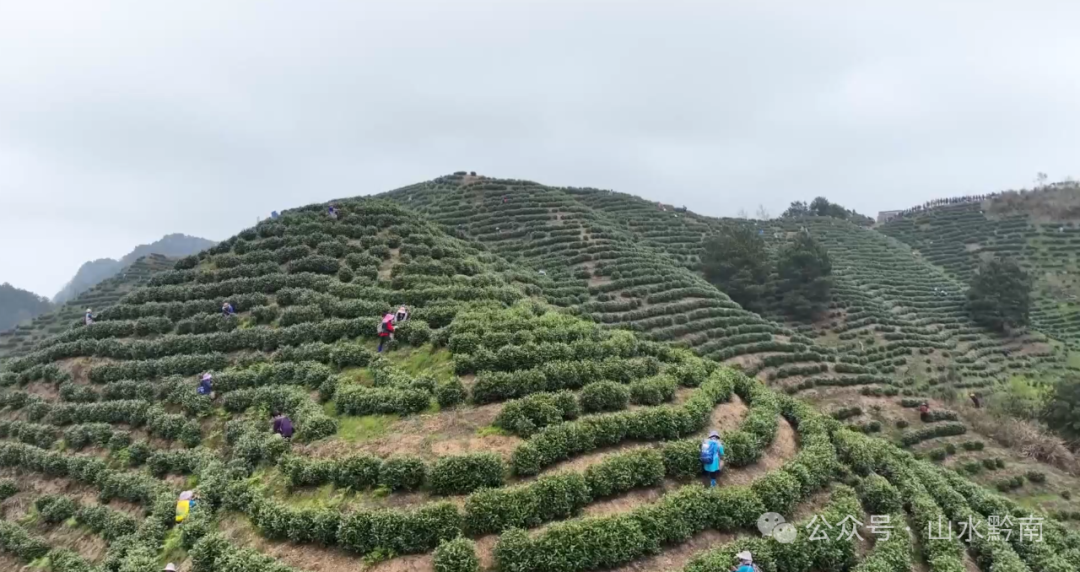 一芽一叶一抹香,一人一篓采茶忙。在三都水族自治县,13.3万亩茶园迎来春茶采摘季。身穿民族服装的采茶工遍布茶山,他们腰挎茶篓,穿梭于翠绿茶山之间,指尖轻舞,春天的第一抹新绿悄然入篓。这片绿水青山,正通过一片片茶叶,转化为乡村振兴的金山银山。
