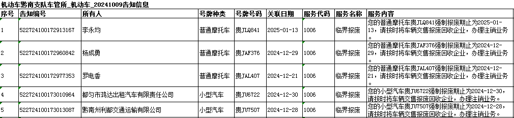 关于黔南州机动车临界报废、逾期未报废车辆的公告