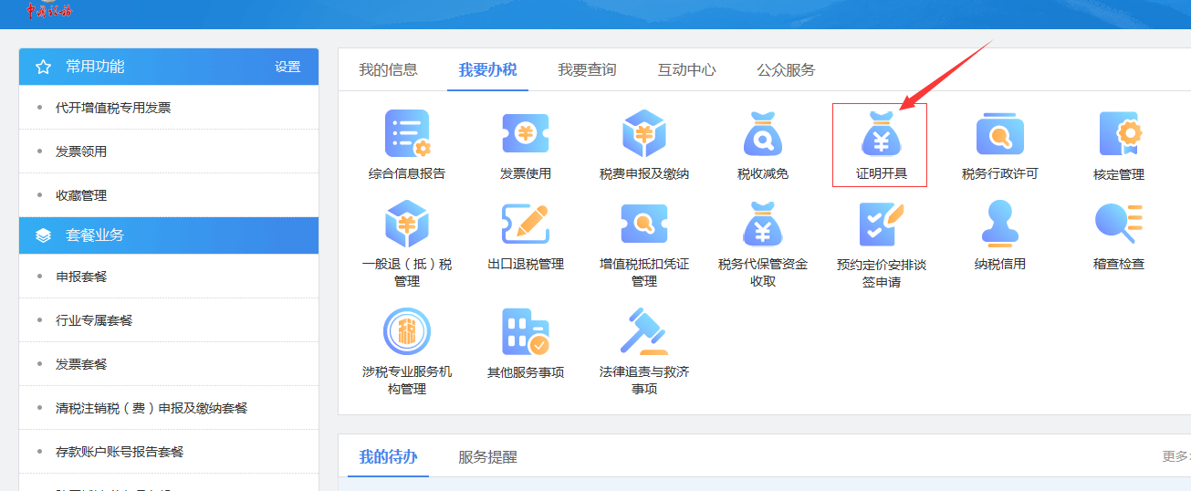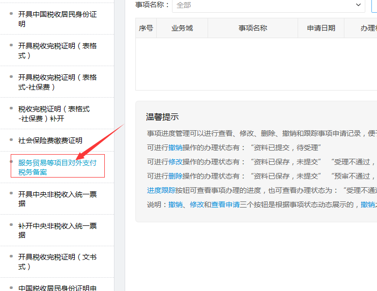 进入路径:我要办税——>证明开具 ——>服务贸易等项目对外支付税务备案。