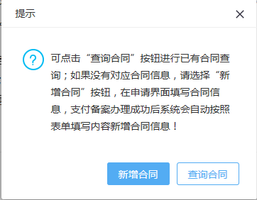 点击【新增】,系统进入备案表录入界面,同时弹出合同信息选择提示框,如下图所示: