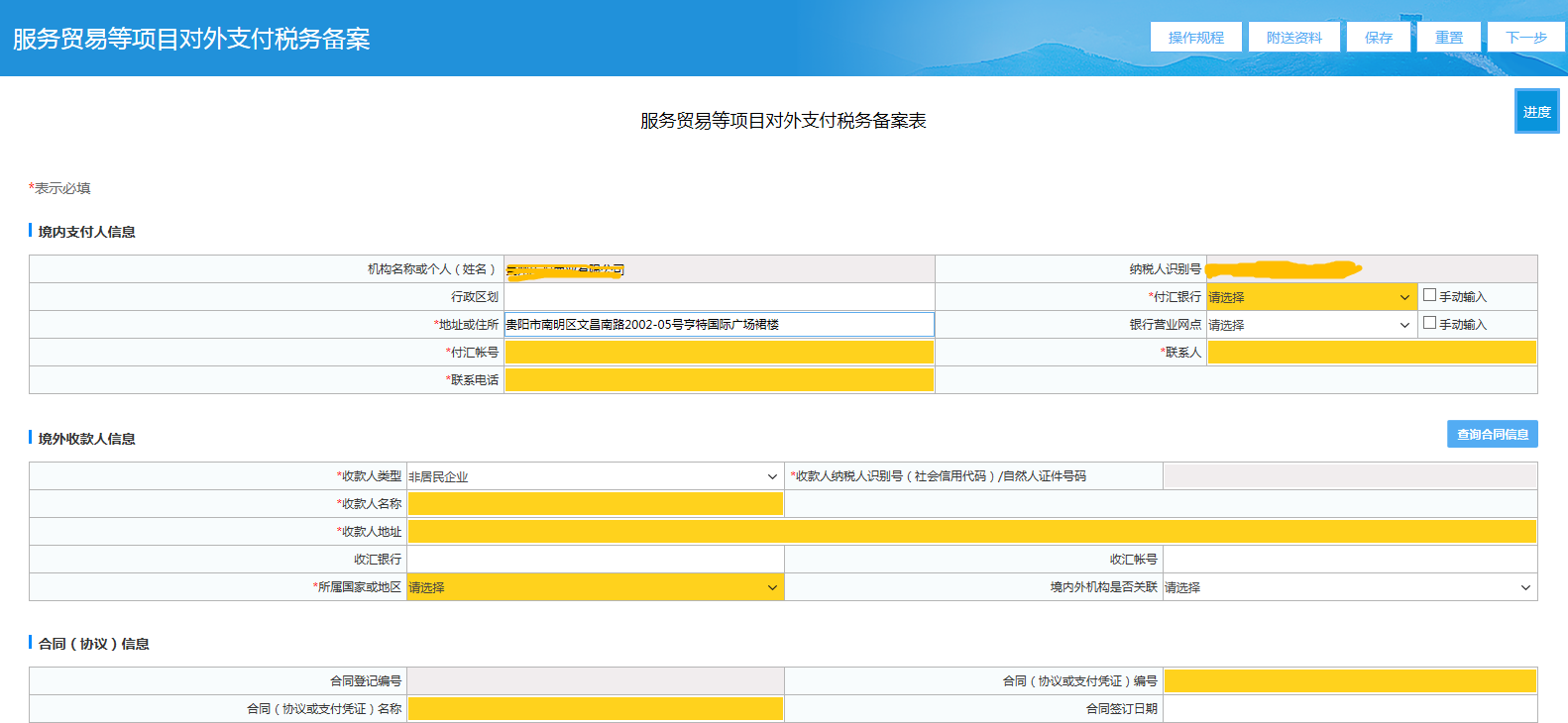 三、录入“服务贸易等项目对外支付税务备案”信息