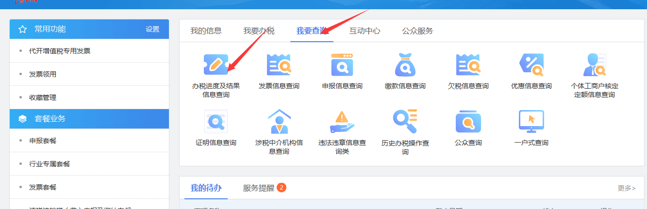 通过“我要查询”-“办税进度及结果信息查询”可查询办理进度。