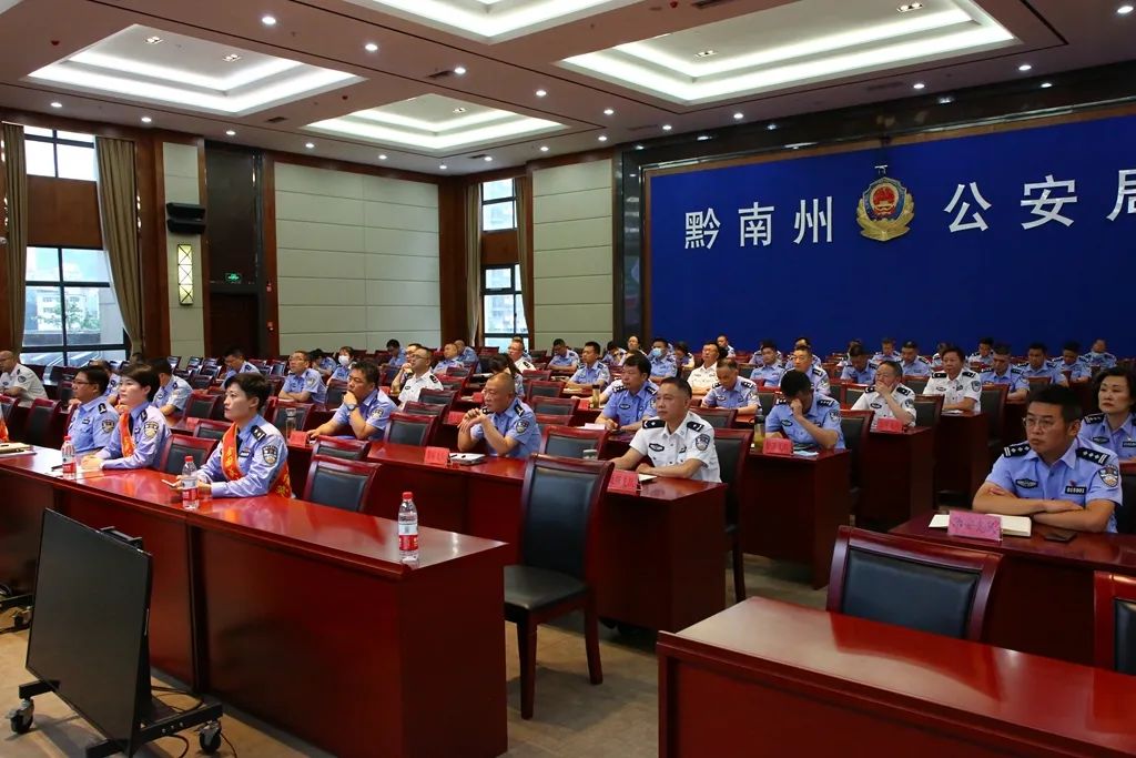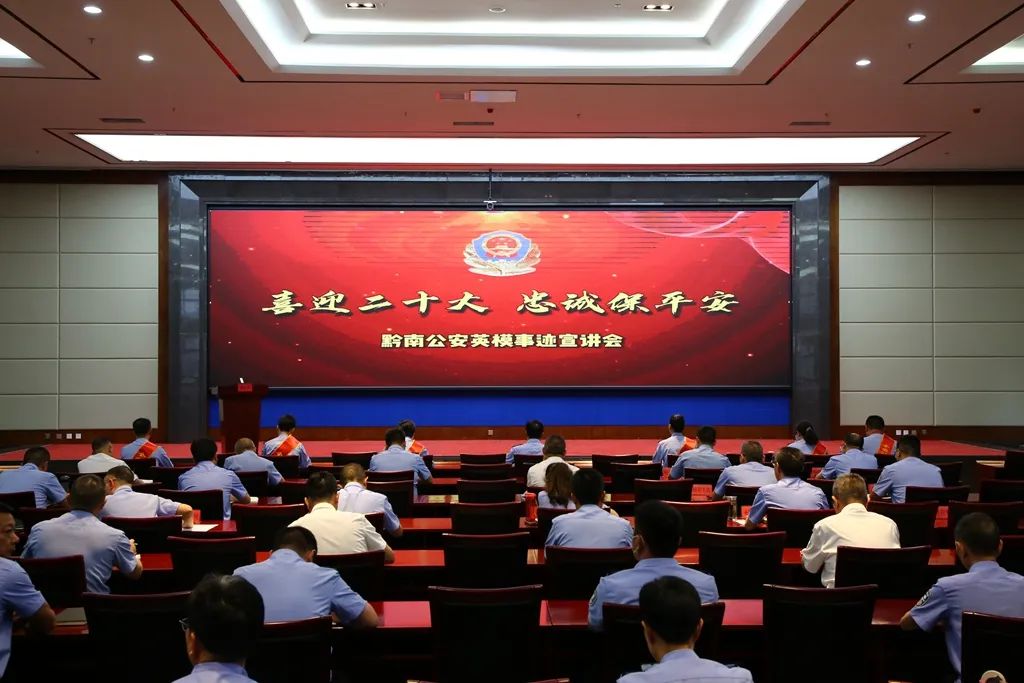 6月27日下午,黔南公安英模先进事迹宣讲会在州公安局拉开序幕。州公安局民警在现场聆听英模事迹宣讲会。